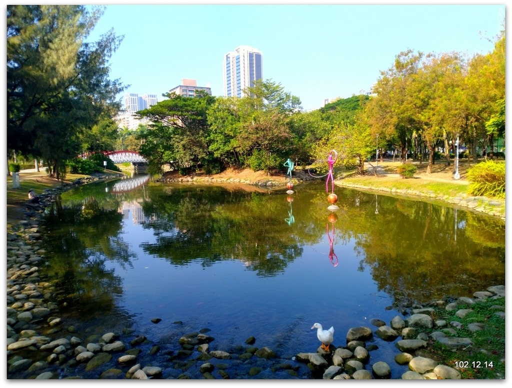 是一座以整合人文遊憩與生態淨水設計的人工濕地公園。
