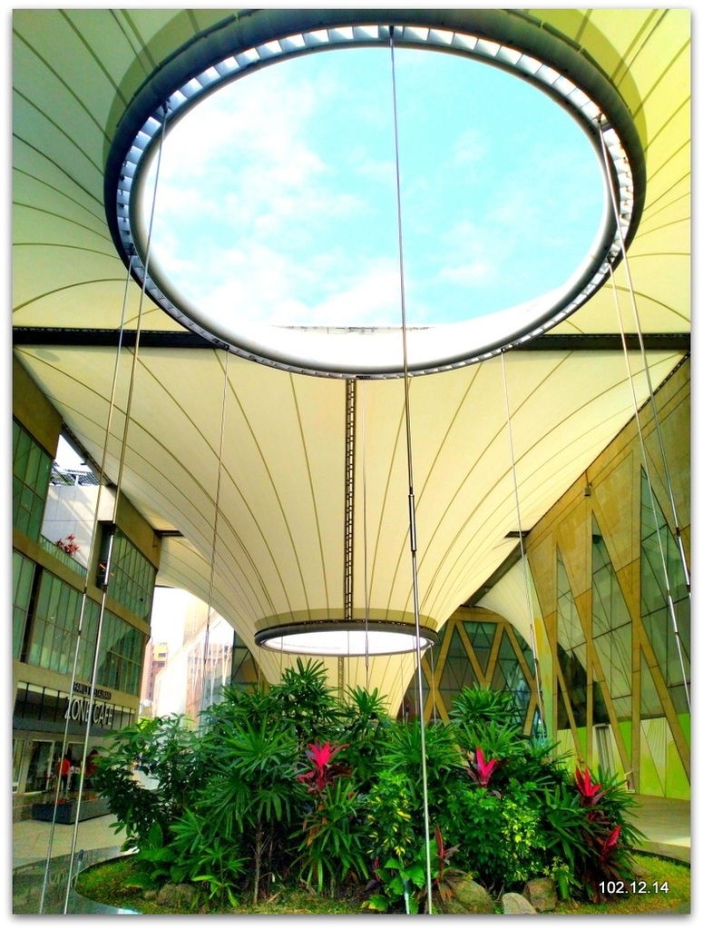 薄膜式的半透光天棚猶如熱氣球般懸浮於半開放廣場,