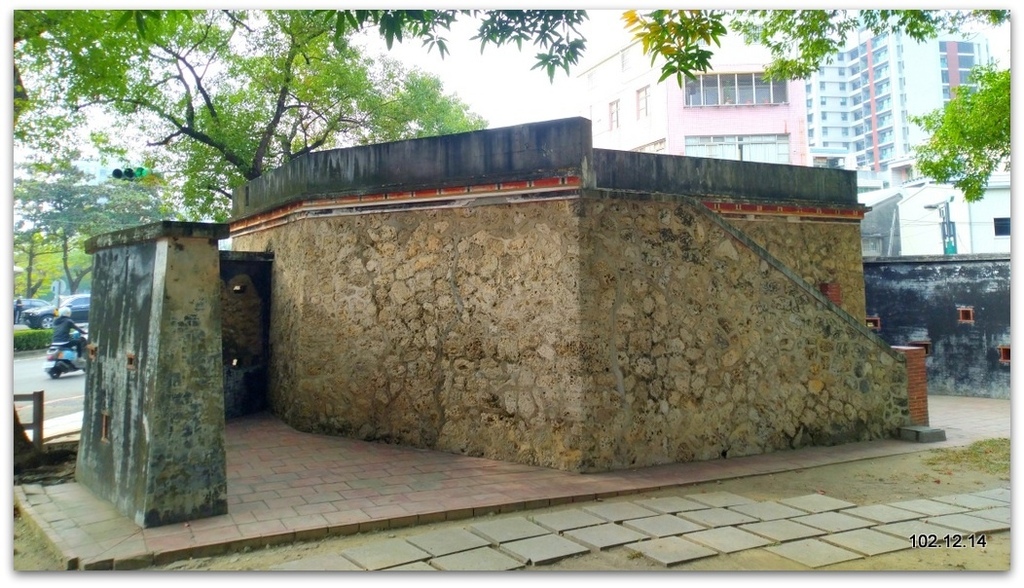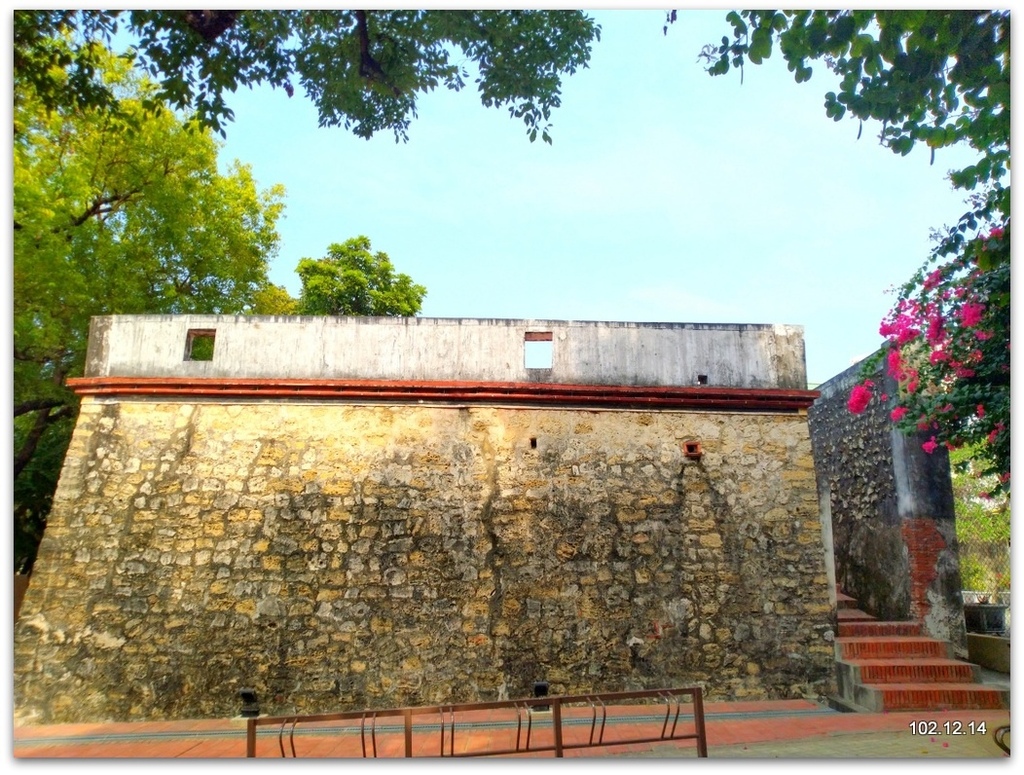 堅固非常。砲台後方朝城內有紅磚階梯可通往砲台平台,