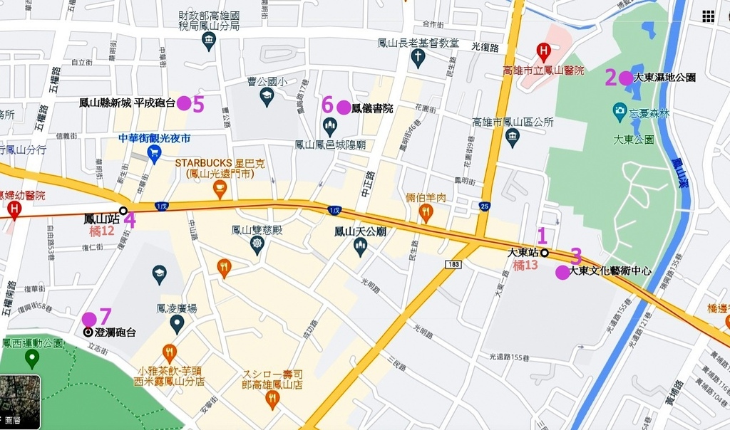 離開中央公園後 轉搭橘線捷運去遊覽 鳳山區的5處景點。