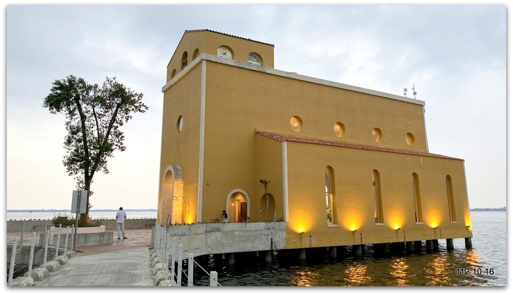 這座延伸到水面上,呈現西班牙風格的鵝黃色教堂,原本是東方度假飯店的賣點之一。